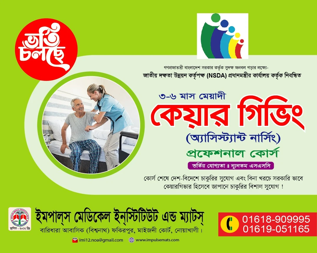 👉 সহজভাবে বললে, কেয়ার গিভিং কোর্স করলে তুমি চাকরি + বিদেশে যাওয়ার সুযোগ + মানবিক কাজের সম্মান—সব একসাথে পেতে পারবে।